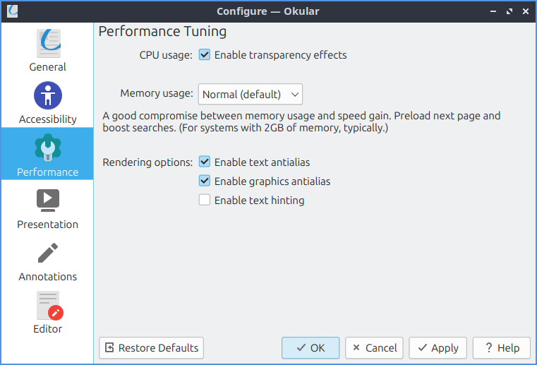 Add Okular Performance screenshot