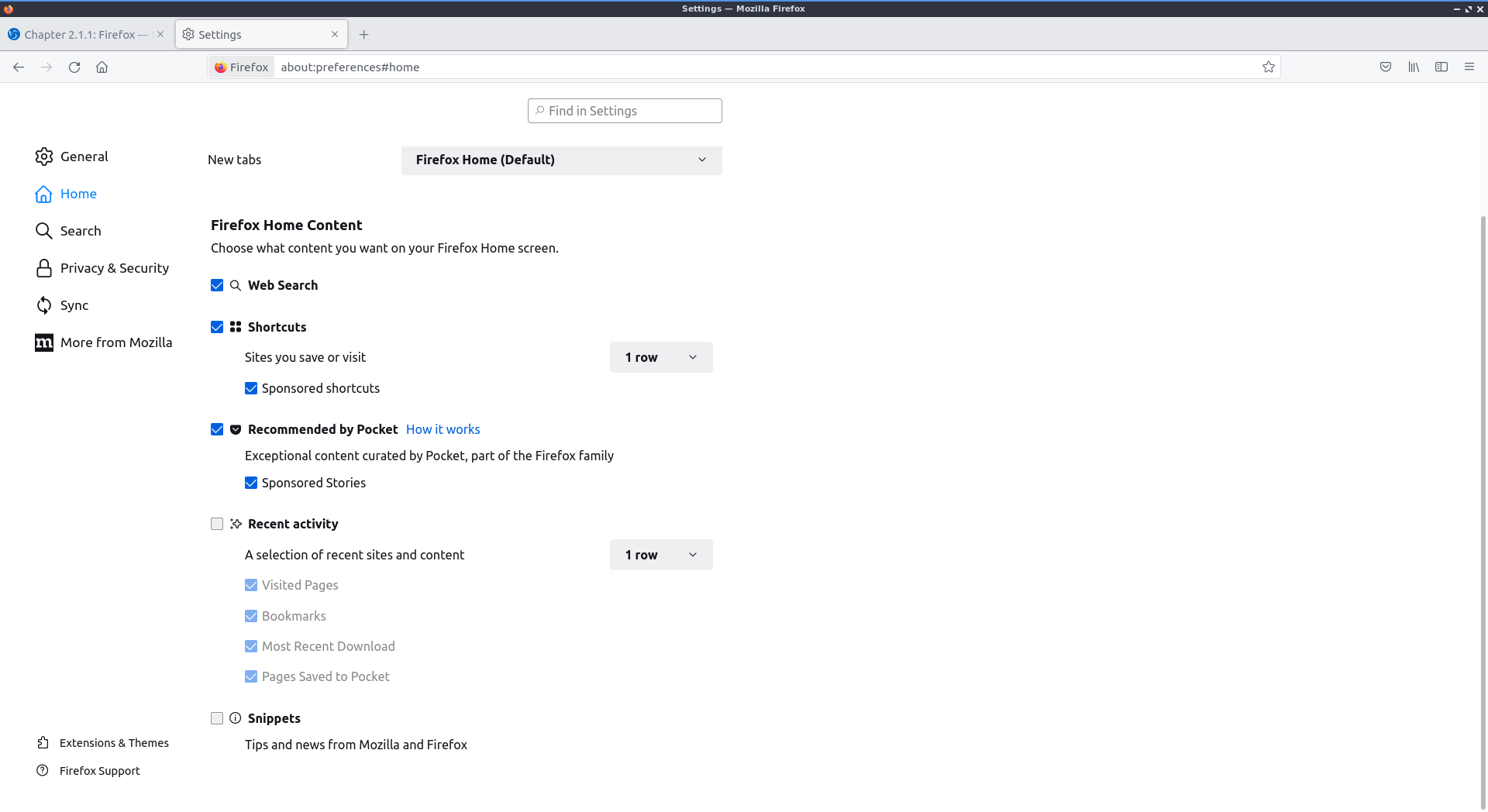 Update firefox prefrences home screenshot