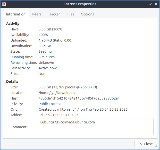 Update transmission torrent properties screenshots