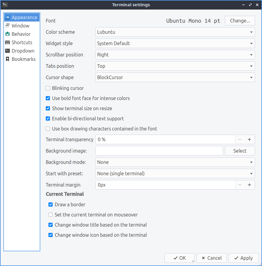 Update Qterminal prefrences screenshot